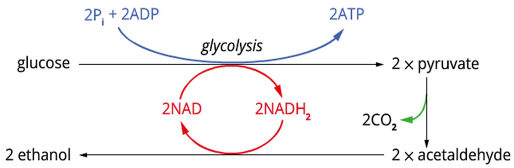 NAD+ can be used for further glycolysis, but ethanol build-up is toxic