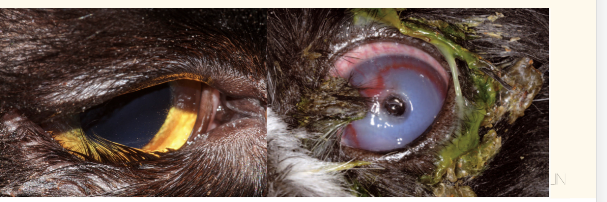 —>corneal cytology and broad spec abx while C+C. chloramphenicol and ofloxacin can be used together if indicated.