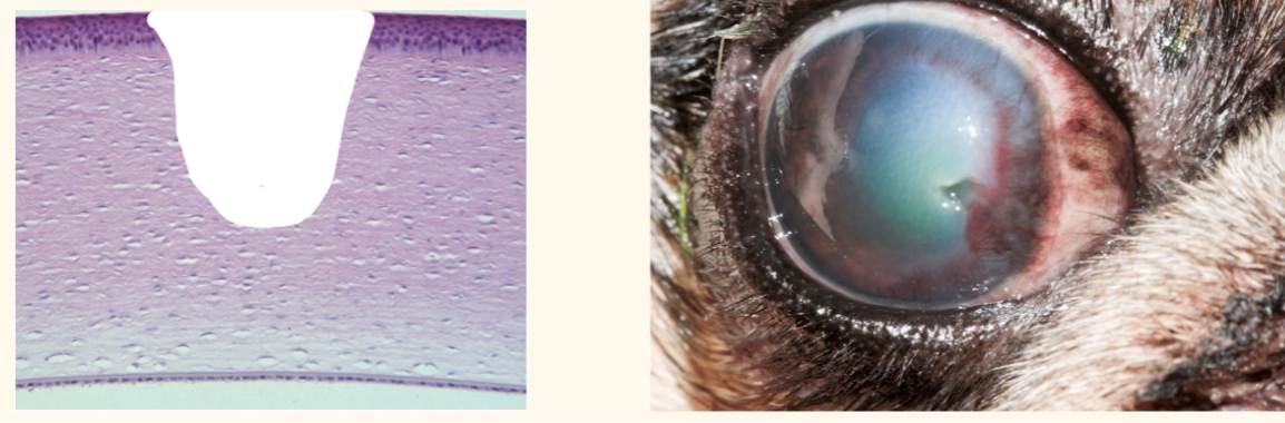 epithelial bullae rupture (secondary to marked corneal oedema)