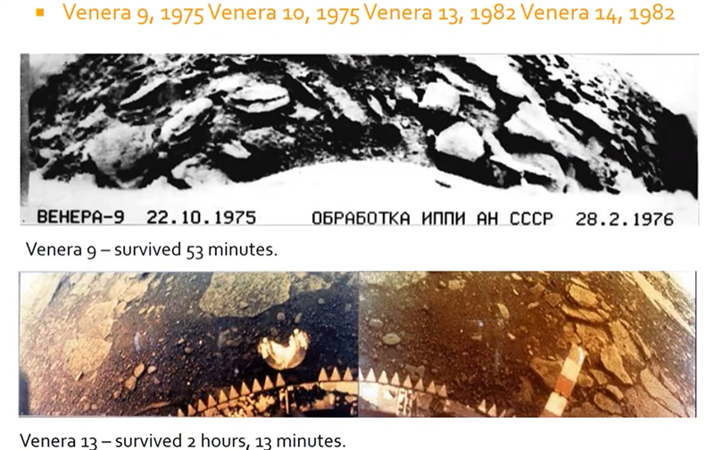vega-2: landed in aphrodite terra, survived 1hr - discovered evolved rocks, troctolite, rich in olivine, plag