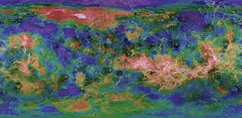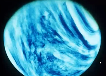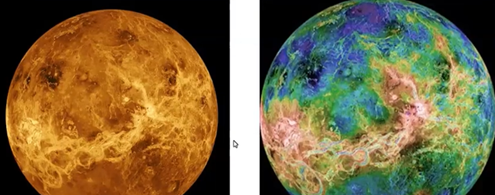 thick atmosphere absorbs blue wavelengths - mostly red light penetrates to surface of venus = orange tint