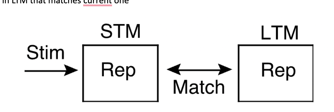 teps: represent physical stimulus in short-term memory(STM) then find representation in LTM that matches current one