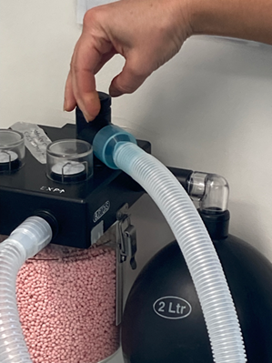 On other systems, an IPPV button valve can be added to the set up allowing single button IPPV. Push the button to deliver the breath and release the button after. Repeat as required.
