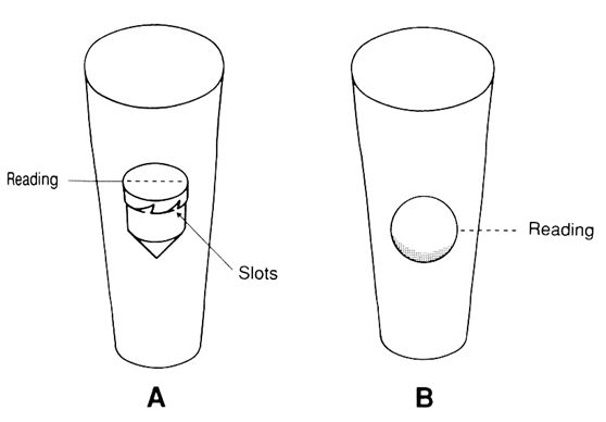 read from the middle of the float OR the top of the float dependent on where the mark is, the float rotates to show you it is not stuck