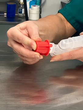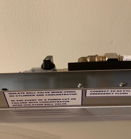 when using concentrator (with O2 cylinder for emergency oxygen flush). The concentrator must be running, and the cylinder opened with the key. The lever is perpendicular to the pipe.