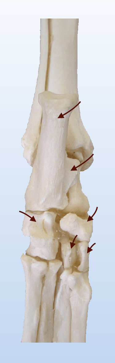 Trochlea of talus bone is not vertical = Not straight → When there is flexion, the joint and the hindlimb automatically move laterally instead of in a straight line → Avoid overreaching or hitting the forelimb especially when they are doing long strides e.g. running