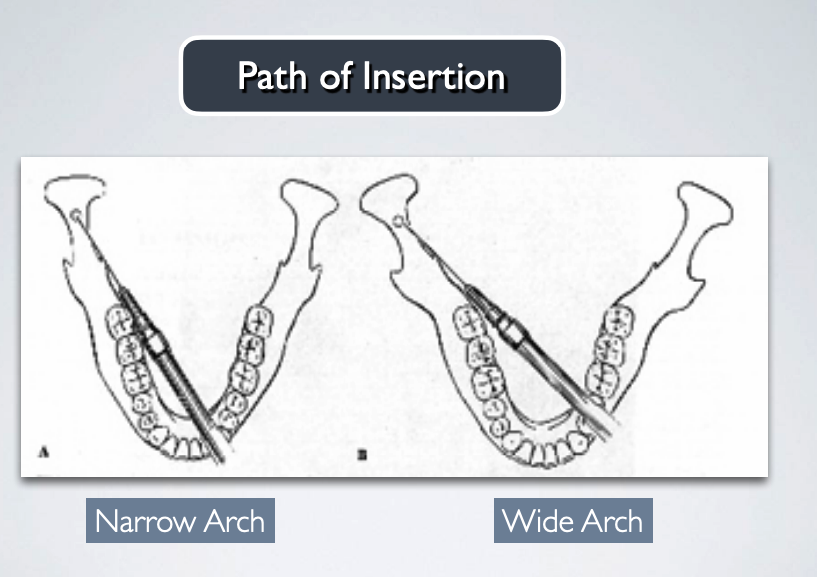 what is the proper insertion path for long buccal nerve block?