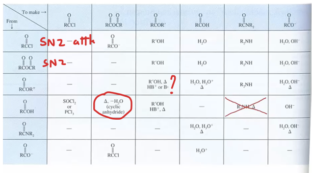 Interconvert between the carboxylic acid derivatives (table)