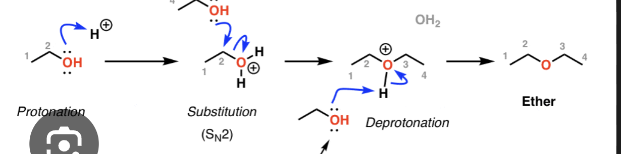 Acid Catalyzed condesation of alchohols (+ mech)