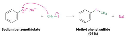 Provide products of the reaction between an alkane thiolate and an alkyl halide. (SN2)