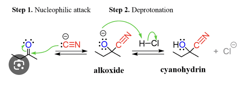 Provide products and a mechanism for the addition of HCN to an aldehyde or ketone to form a cyanohydrin