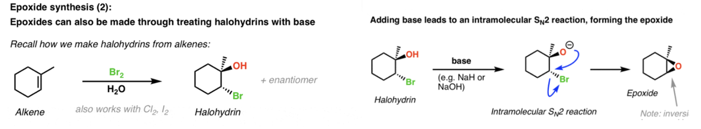 Provide products and mechanisms for the reaction of vicinal halohydrins in base to form epoxides