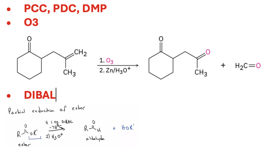 Synthesize aldehydes from primary alcohols, from alkenes, or from esters