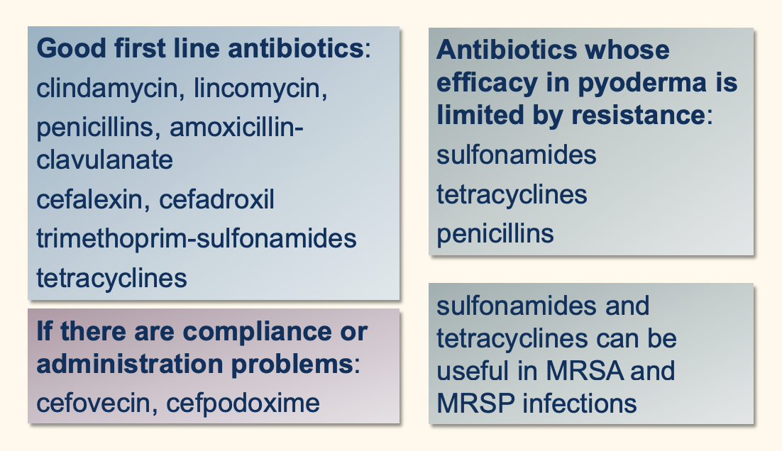 Resolution of lesions and normal cytology • Surface & superficial pyodermas usually 1-3 weeks • Deep pyodermas often improved in 2 weeks – Full resolution may take 4-6 weeks or longer