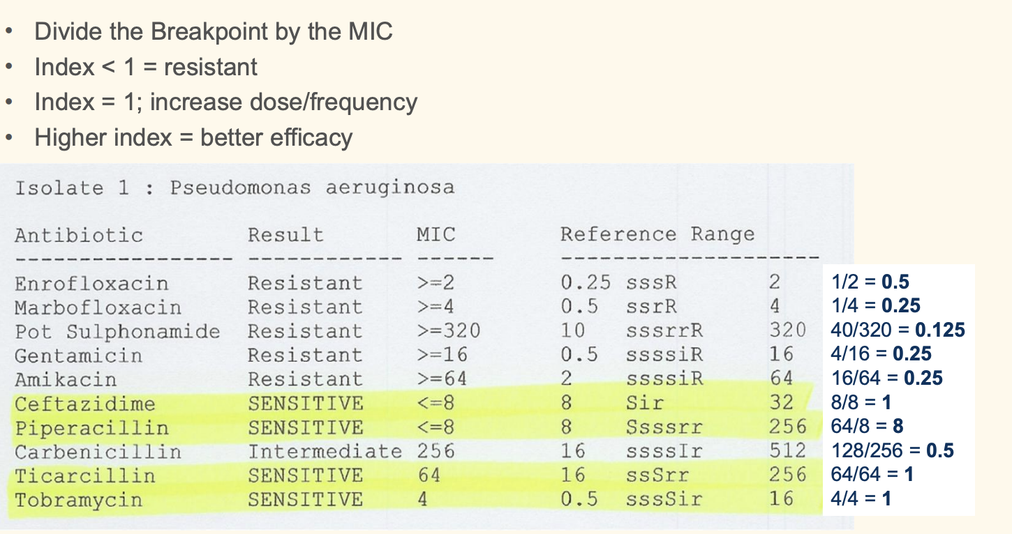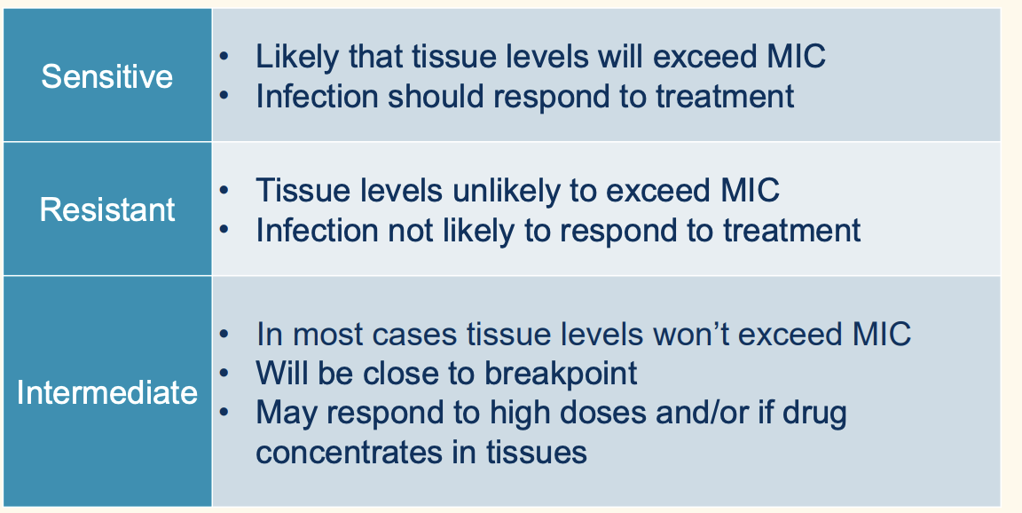 MIC = lowest concentration of antibiotic that prevented bacterial growth • The tissue concentration needs to match or exceed the MIC • Tissue concentrations < MIC are sub-therapeutic