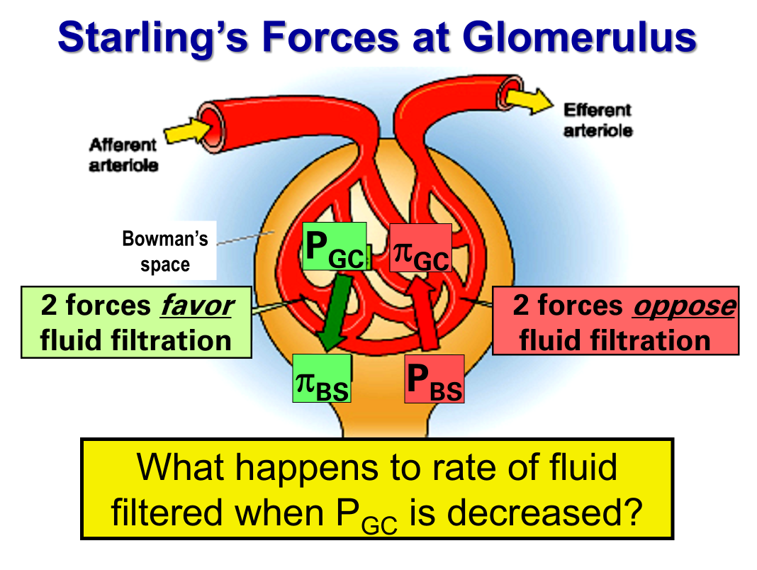 PBS → fluid pressure in Bowman’s space → opposes filtration