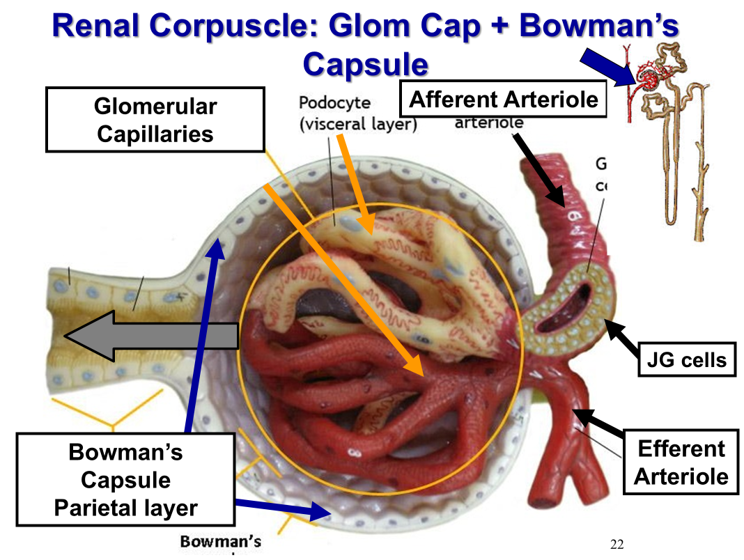 Allows glomerular capillary hydrostatic pressure to be veyr high, which forces fluid and solute out of blood into Bowman’s capsule by bulk flow