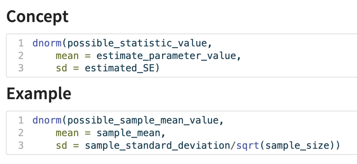 dnorm(…) : calculates the height (probability density) of the normal distribution curve for each point in values