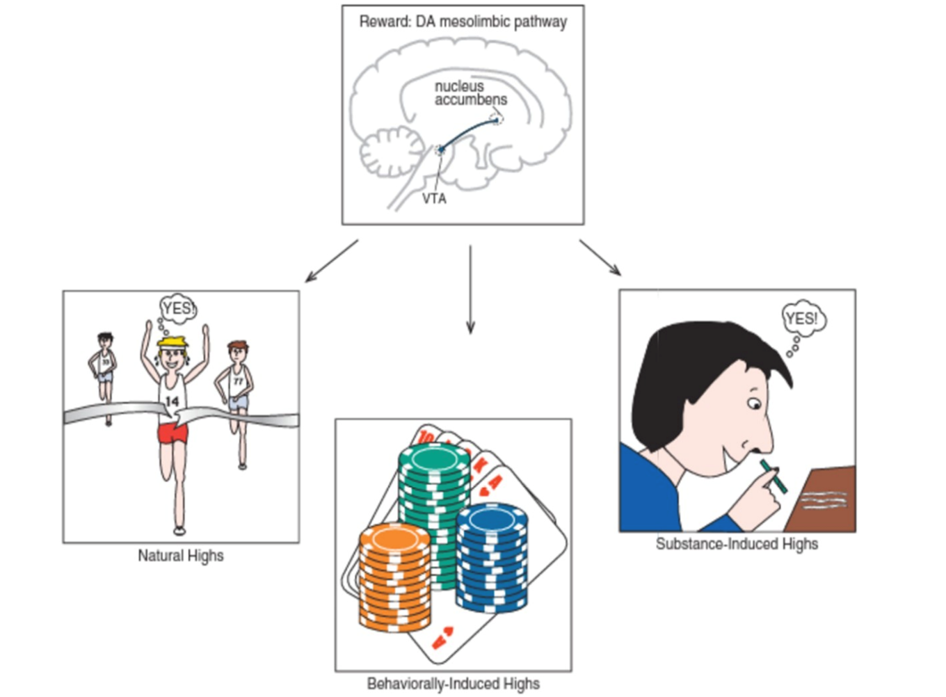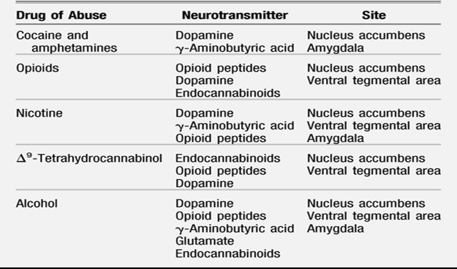 •All drugs of abuse increase dopamine levels in the brain reward pathway although they often act through separate mechanisms