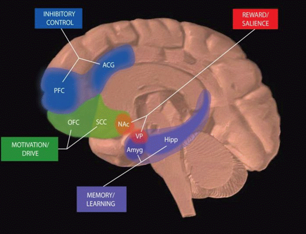 NAc: nucleus accambens; VP: ventral pallidum; Amyg: amygdala; Hipp: hippocampus