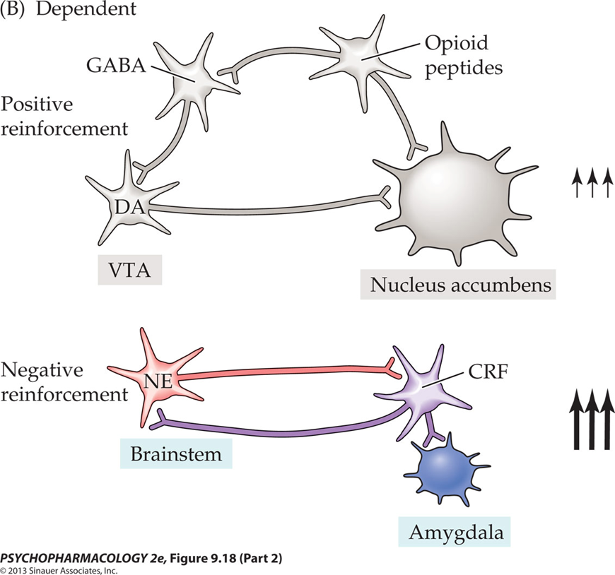 Negative reinforcement and withdrawal symptoms (role of noradrenaline)
