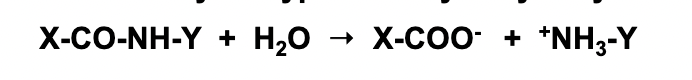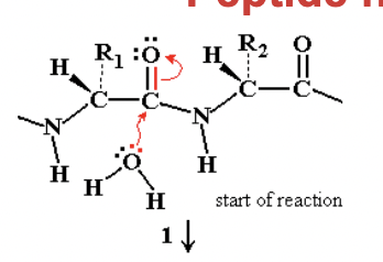 Water now will be an OH^- making it a better nucleophile, which will attack the carbonyl carbon of the peptide.