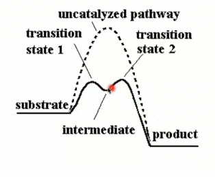 (remember with chymotrypsin there are two transition states) so to move to the next state we see a breakdown of this first transition state.