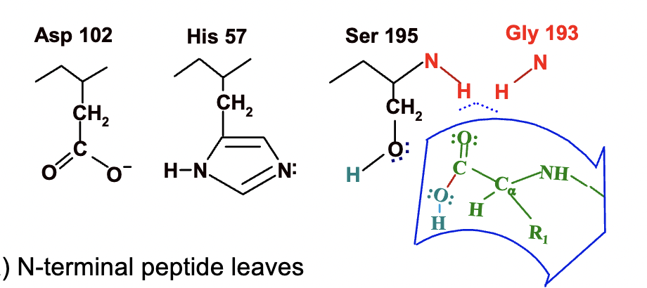 we are left with the N-terminal part of the peptide covalently bonded in an ester to the 195 Serine’s oxygen.