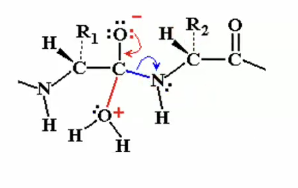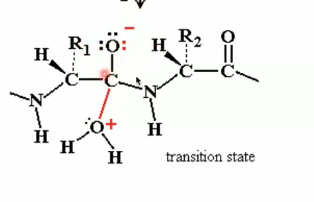 Now we have our tetrahedral carbon with the oxyanion on the peptide