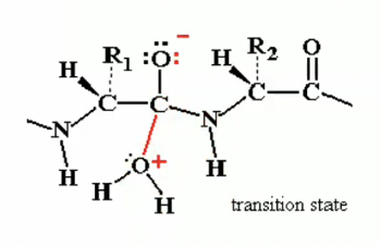 Breakdown of the first transition state (Chymotrypsin reaction)