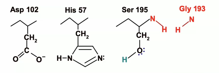 Serine 195 deprotanates and becomes a really good nucleophile.