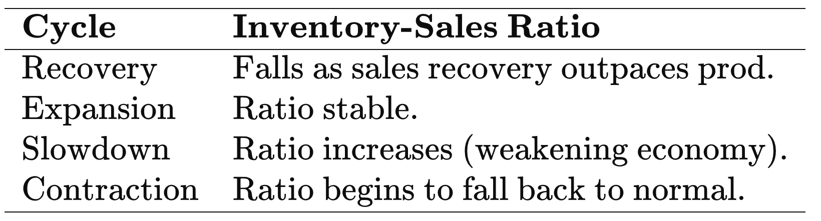 Inventory to sales ratio – показывает накопление или сокращение запасов после изменения спроса