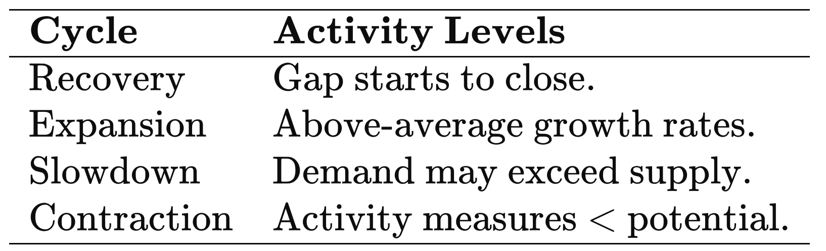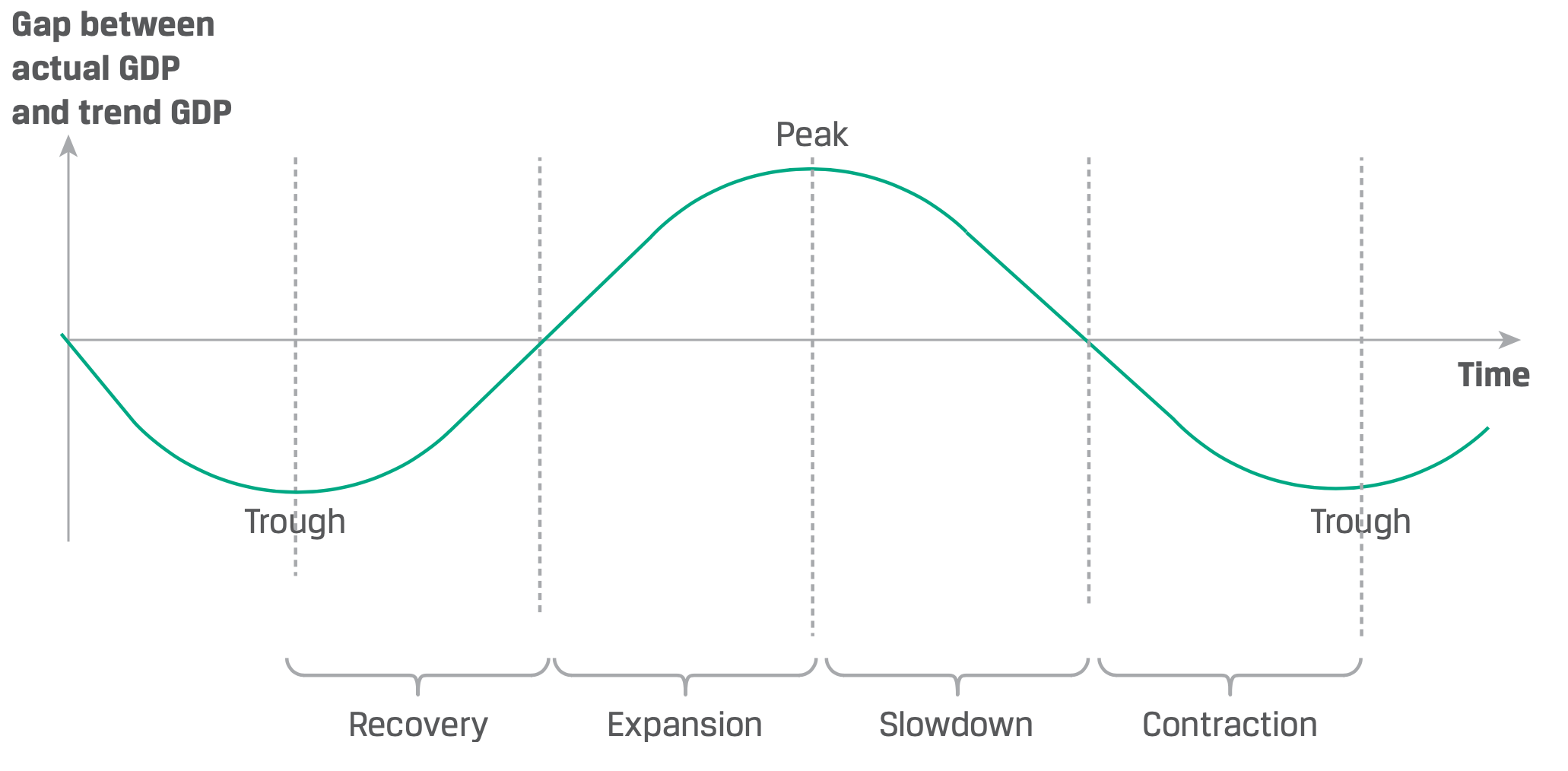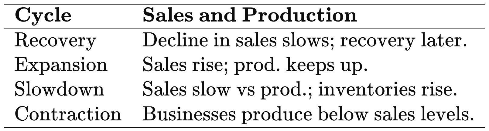 The stages of the business cycle occur repeatedly over time, the are recurrent.