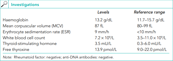 TSH: 3.5 mU/L (reference range 0.3–6.0 mU/L)