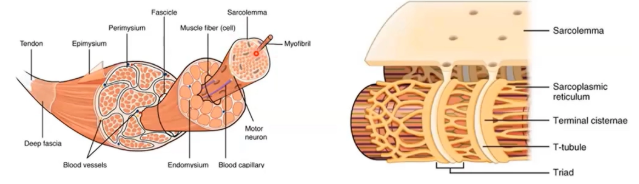 A sarcoplasmic reticulum wraps around each myofibril