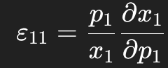 Own-price elasticity for x1(p1,p2,m)