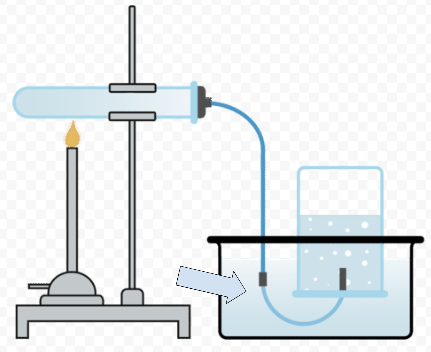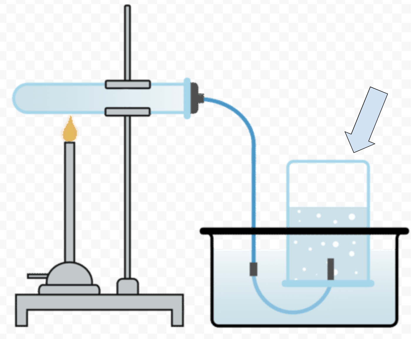 Once the gas has been collected, raise or lower the bottle so that the water level inside the bottle is the same as the water level outside the bottle