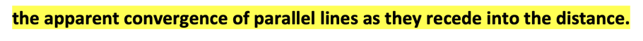 the apparent convergence of parallel lines as they recede into the distance.