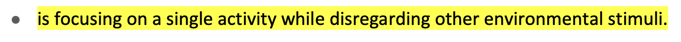 is focusing on a single activity while disregarding other environmental stimuli.