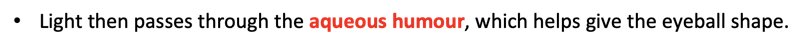 •Light then passes through the aqueous humour, which helps give the eyeball shape.