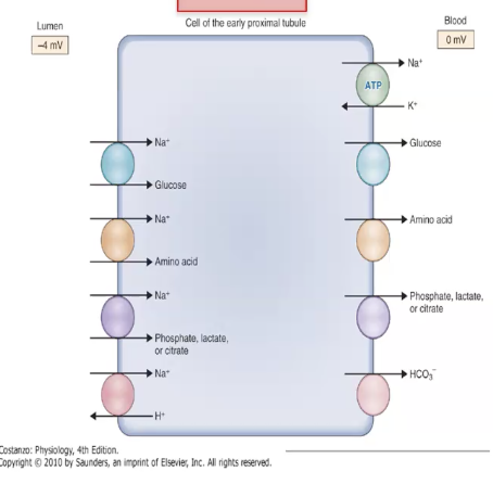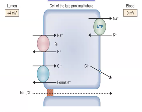 Key identifier: Secondary active chloride transport. There are NO chloride transport proteins in the early proximal tubule. If you see formate. Chloride moves passively AND actively