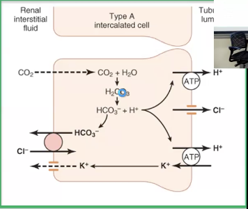 Key identifier: Secreting acid H+, and reabsorbing base HCO3- and K+