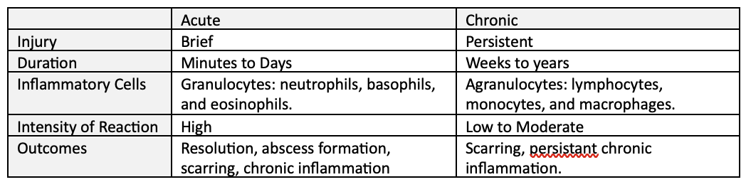 Necrosis: the death of a cell due to a pathological condition. Leads to cell enlargement and loss of membrane integrity, causing leaking of cell contents, triggering an inflammatory response.