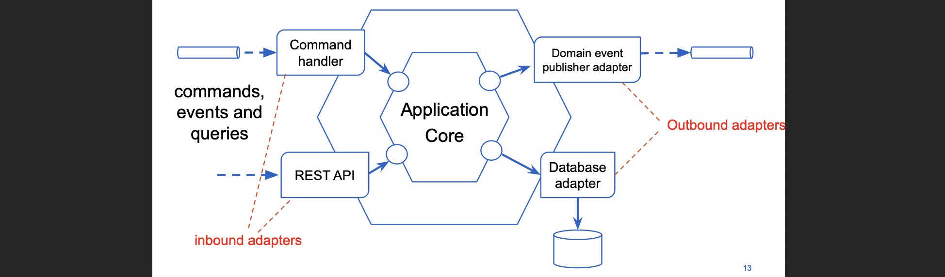 Outbound adapters: DB, message broker, externe services
