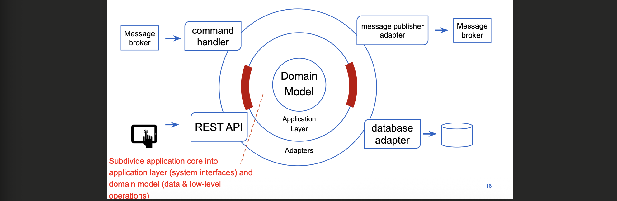 → domain/application kennen geen REST, DB, message broker