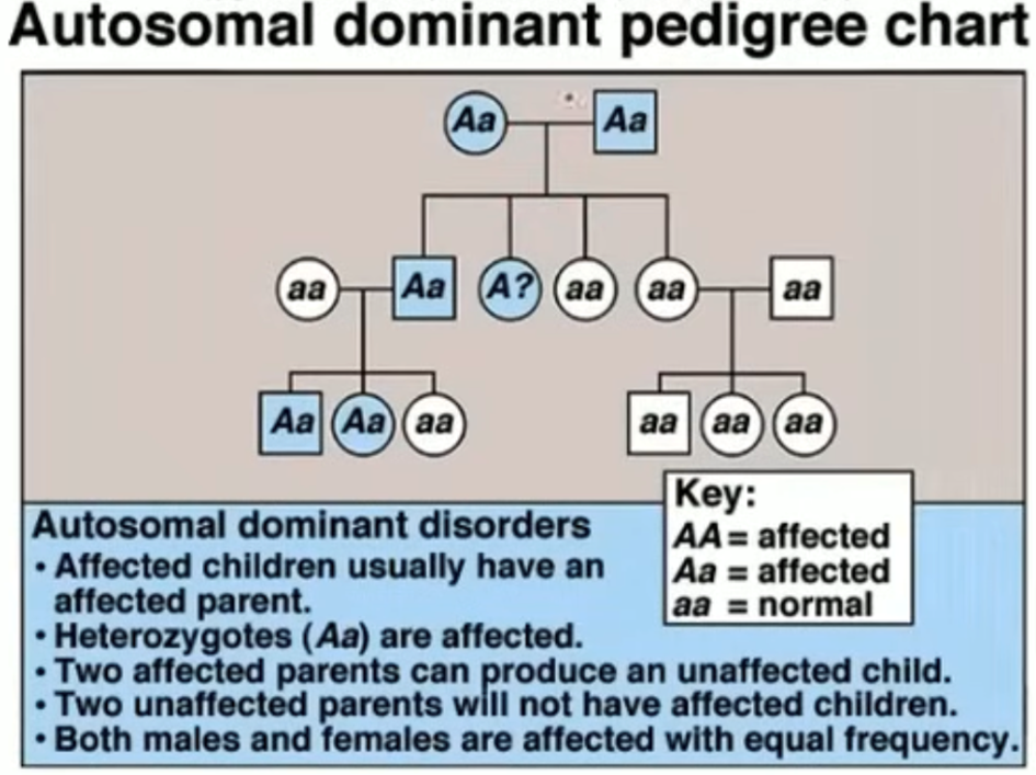 ØAn affected female (heterozygous) has a 50% chance of passing the trait to any child, male or female.
