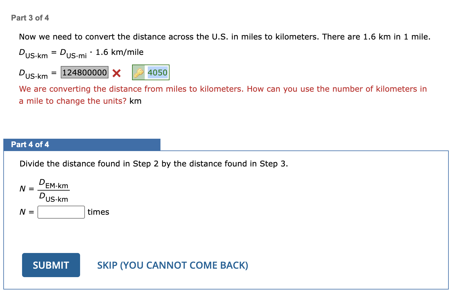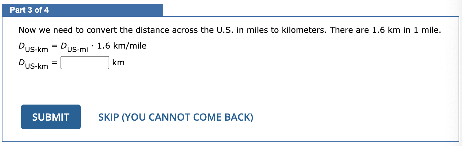 When the Earth passes directly between the Sun and Mars, the Earth and Mars are closest to each other. If Mars is 1.52 AU from the Sun and there are 1.5 ✕ 108 km in 1 AU, how many times will the width of the U.S. (2,530 miles) fit end-to-end between Mars and Earth?