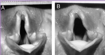 Tx: unilateral arytenoid lateralization (reduce obx and resistance) tie back