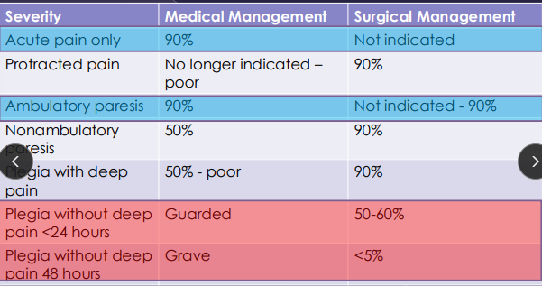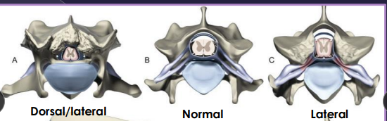 Cs: neck pain(30-60%), progressive tetraparesis, ataxia, neuro defects(94%)
