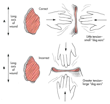 Perpendicular = wider scars, delayed healing, “dog ears”